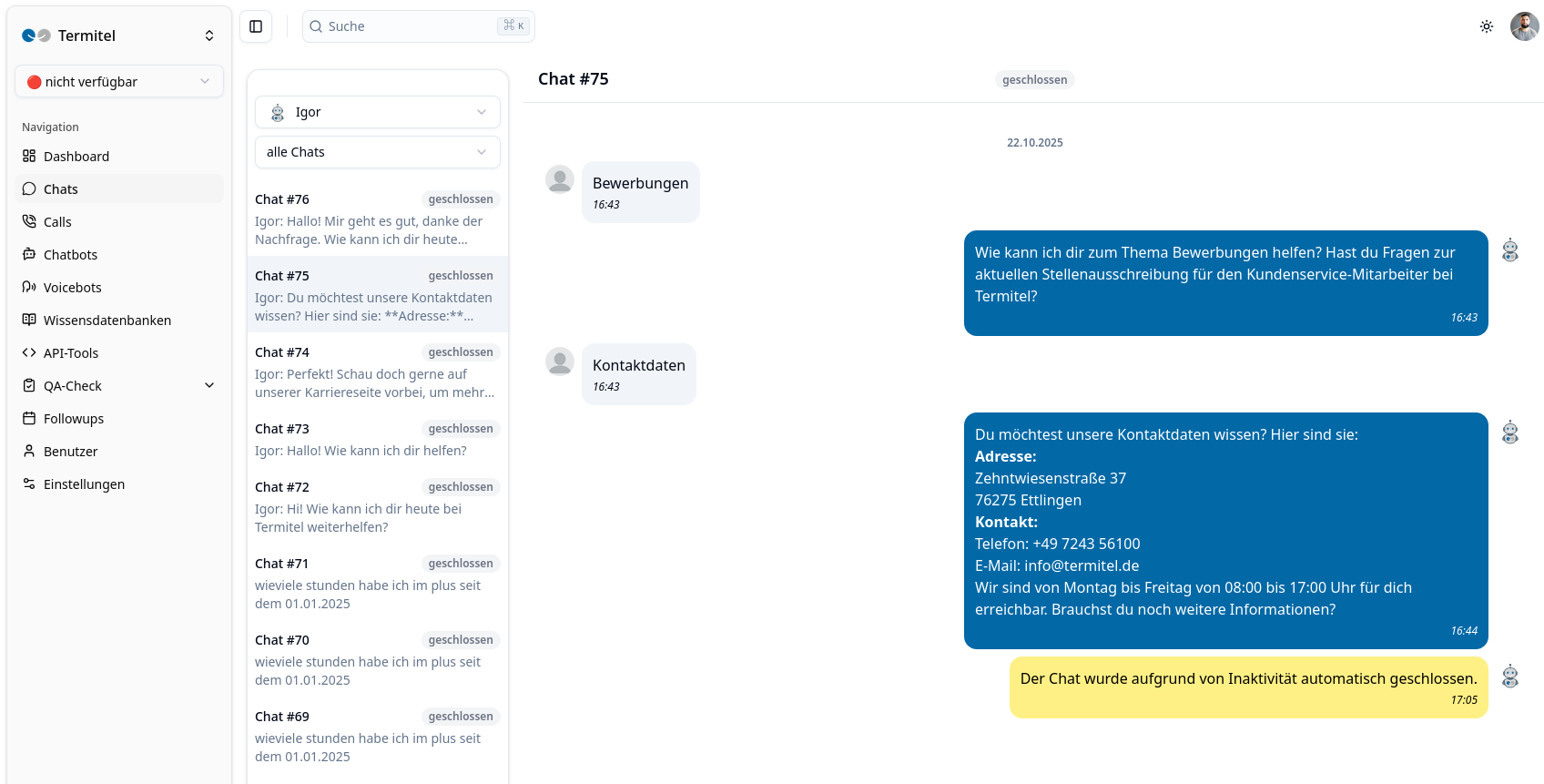 Mit Termibot verbinden Sie moderne KI-Chatbots mit Ihrem CRM. Automatische Kundenkommunikation oder Übergabe an echte Mitarbeiter – alle Chats landen im Kontaktverlauf.