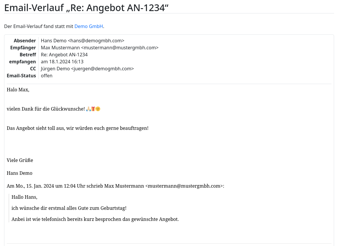 E-Mails direkt im CRM empfangen, beantworten und archivieren – inklusive Vorlagen & Signaturen.