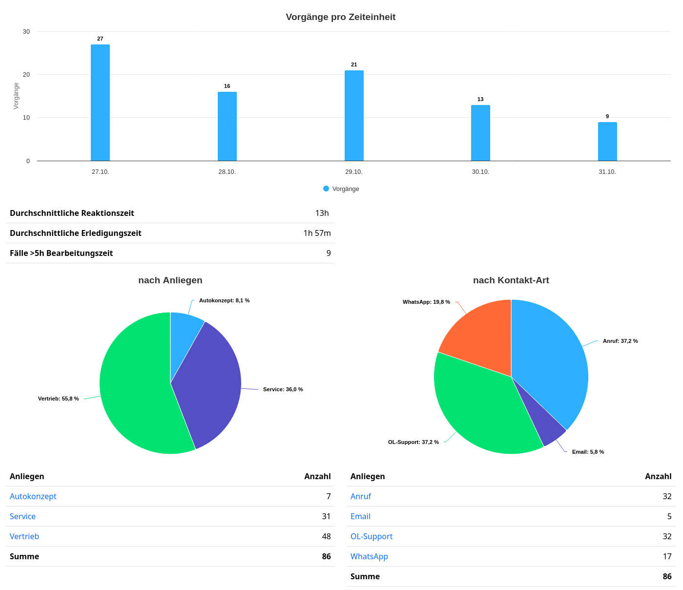 - Filterung nach Zeitraum, Kanal oder Mitarbeiter