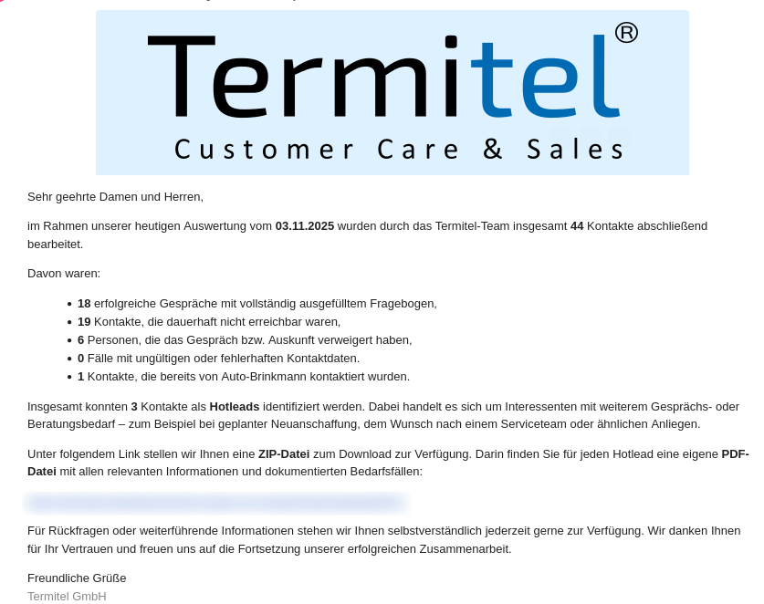 Regelmäßige E-Mail-Reports mit den wichtigsten Kennzahlen Ihres Teams.